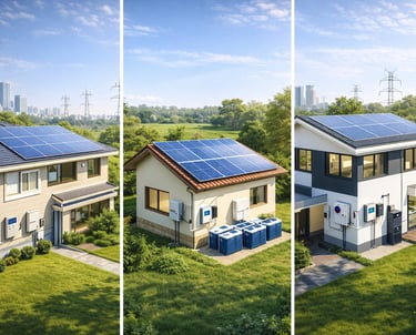 Types of Solar Power Systems: There are three main types of solar power systems used to generate electricity. Each system is designed to suit different energy needs, locations, and backup requirements.